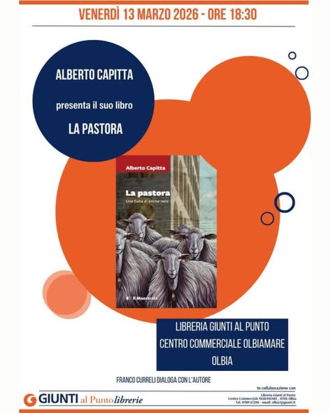 Olbia venerdì 13 marzo ore 18.30 Presentazione del libro di Alberto Capitta "La pastora"